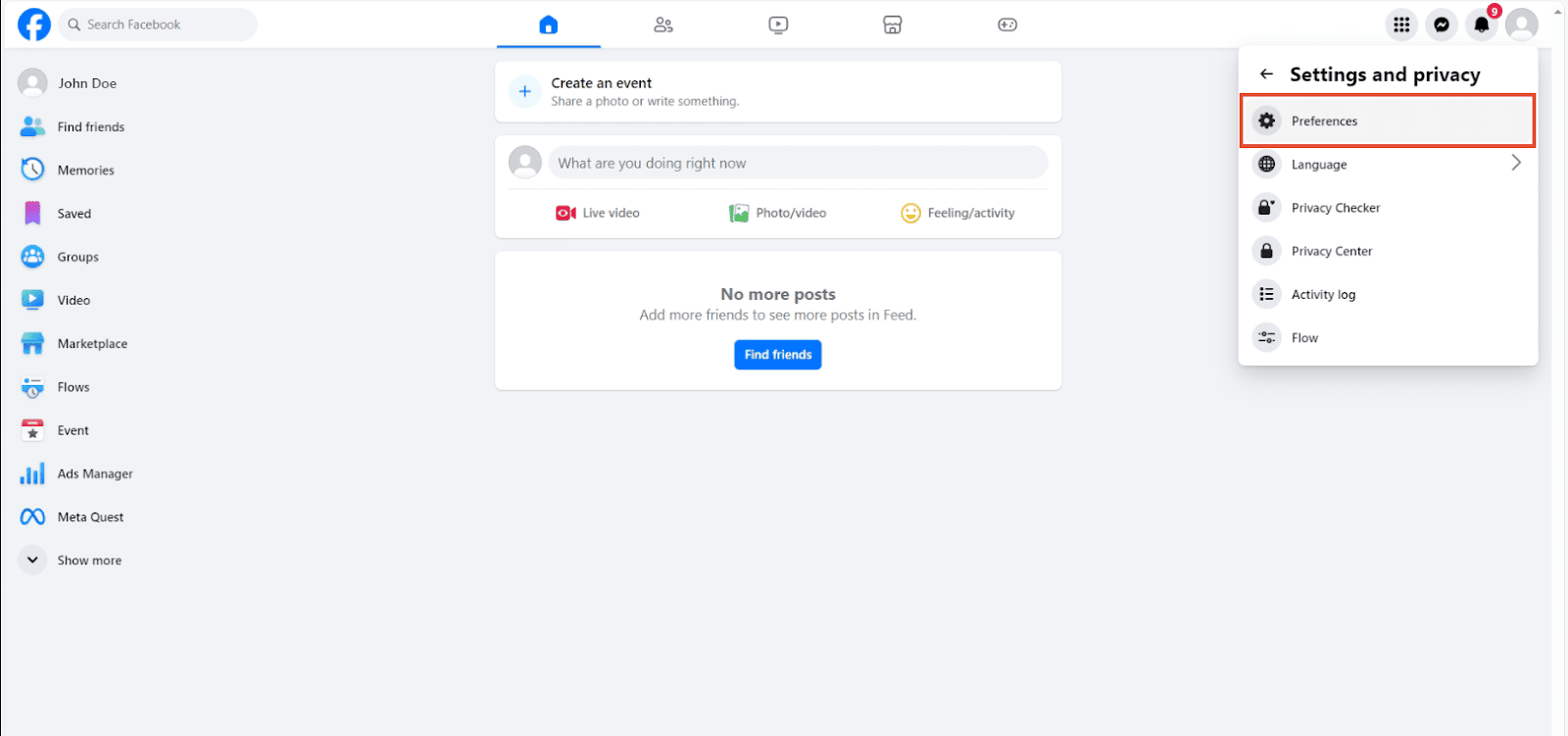1. Go to your Facebook Account’s Settings & Privacy.